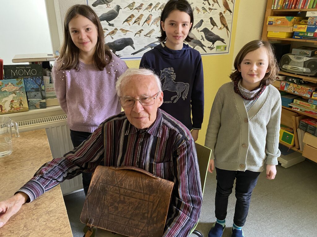 In der Evangelischen Grundschule Grumbach haben einige Viertklässler ihre Großeltern eingeladen. Sie sollten ihnen von der Schule früher erzählen und ein paar Fragen beantworten. Wir haben viel dazu gelernt, zum Beispiel gab es früher härtere Strafen. Sie hatten 8 Wochen Sommerferien, dafür aber keine richtigen Herbstferien. Eine Woche hatten sie zwar schulfrei, aber sie mussten auf dem Kartoffelfeld arbeiten. Eine Oma hat erzählt, dass es 40 Kinder in der Klasse gab. Bei uns sind es nur 20 Kinder. Manche Großeltern haben eine Führung durch die Schule bekommen.