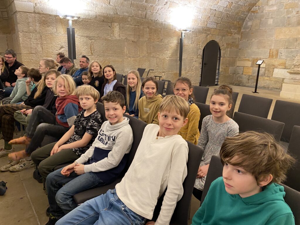 Am 6.3.2024 begab sich unsere dritte Klasse im Rahmen des Musikunterrichtes auf einen besondern Ausflug. Wir durften ein Harfenkonzert in der Unterkirche der Frauenkirche genießen. Die Reihe “Musikalisches Klassenzimmer”, organisiert von den “Dresdner Schulkonzerten”, hatte dazu eingeladen. Simone Geyer, Harfenistin der Staatsoperette, spielte für uns und rund 100 andere Schulkinder das Programm »Vielsaitig unterwegs – mit der Harfe um die Welt!«.